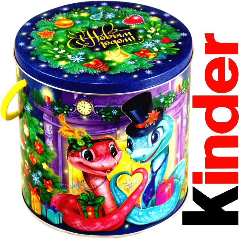 Сладкий новогодний подарок в жестяной упаковке весом 1000 грамм