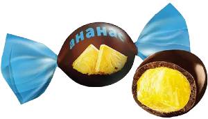 Ананас в шоколаде (2 шт), Вишня в шоколаде (2 шт), Чернослив в шоколаде (1 шт), Курага в шоколаде (1 шт), Миндаль в шоколаде (2 шт), Фундук в шоколаде (2 шт)